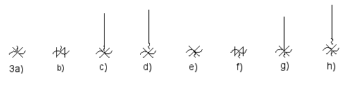 This problem is solved if the small ad lib. sign is placed in the bottom end of the flexion or extension sign (Ex. 3e and 3f). Then, it would be clear, for instance, that Ex. 3g indicates a flexion (any degree), and Ex. 3h indicates a flexion (any degree) followed by a separate action.