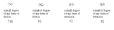 In Guest, Your Move, 1995 (p. 96) all the signs for “any form of flexion” or “any form of extension” state an amount, as shown here in Ex. 1a-d.