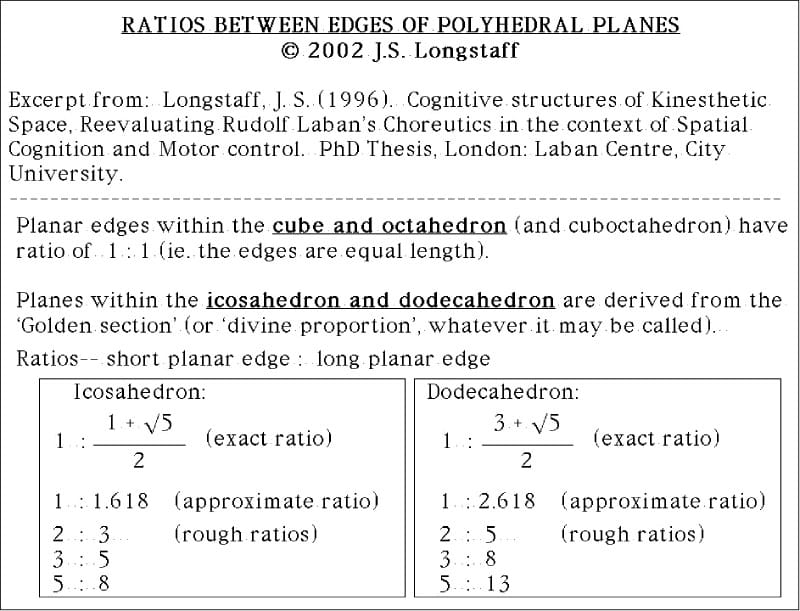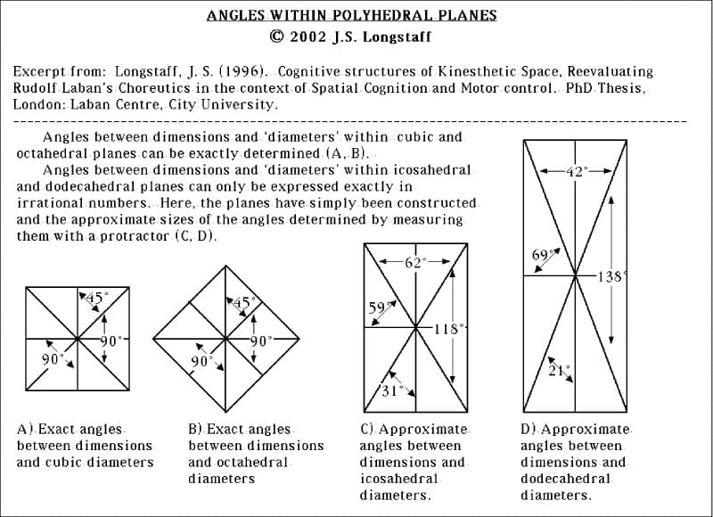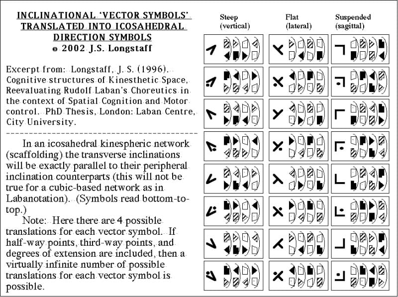 Directions relating to a cube or to an icosahedron, etc. is a special application evolved by Laban. We recognize the value of such movement ideas, but they are not universal, they could not be a basis for Labanotation, hence the need years ago to divorce Labanotation from Laban’s theories.