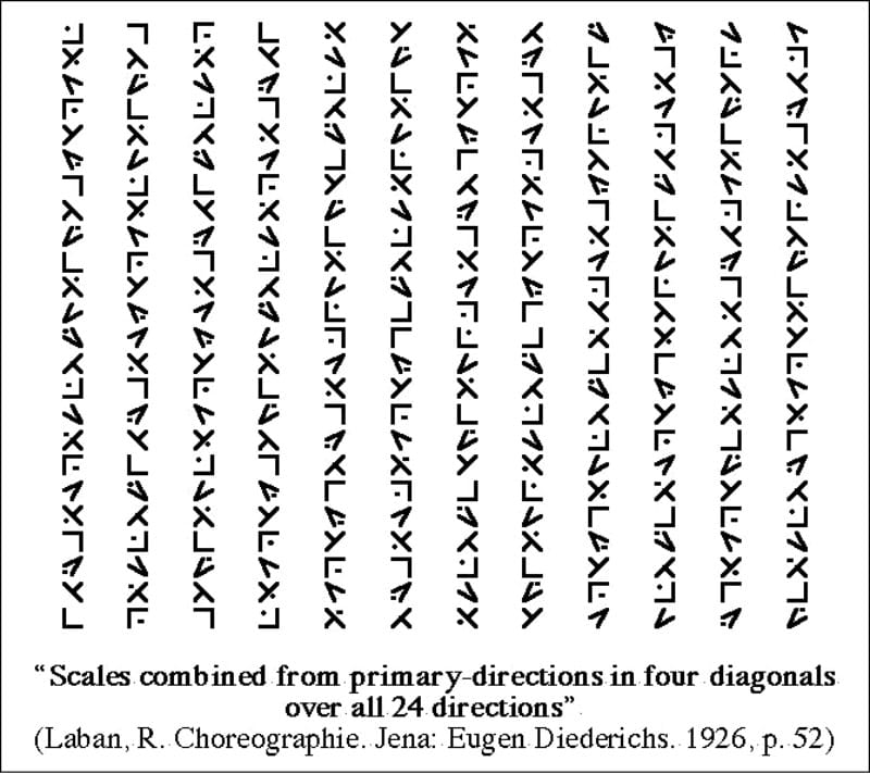 3) One set of ‘scales’ notated in vectors from Laban’s (1926) choreographie.