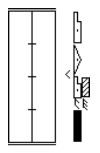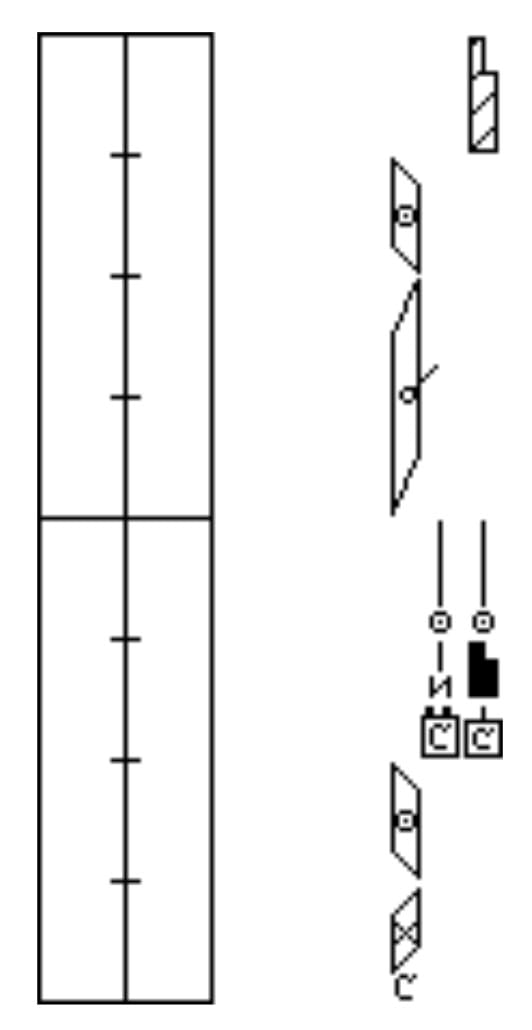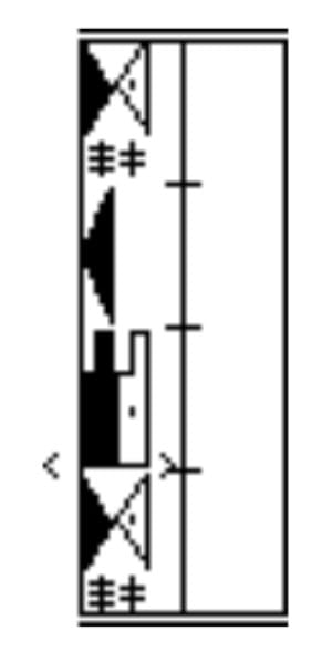 The first column outside the staff on both sides is designated for upper body movements. Historically, upper body indications have been used more extensively by practitioners of Kinetography Laban than by those of Labanotation. In Labanotation, on page 492, Ann Hutchinson Guest says of the upper body: “The term ‘upper body movements’ refers to movements which range from involving only the shoulder section of the spine (the upper dorsal vertebrae) to involving the whole of the moveable spine including the lumbar region.” Upper body movement is the movement that the body would make if the arm were in the direction stated for the upper body with an inclusion. But the upper body movement can be done without that specific arm gesture. For further information, read pages 492 – 494 in Labanotation and in Dictionary of Kinetography Laban by Albrecht Knust, entries 412 – 417.