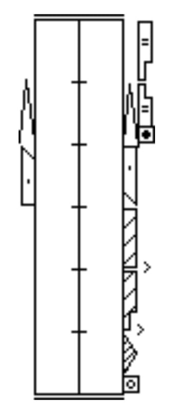 The head columns also fall under the category of temporarily designated columns. In the example above, on count 1 the head twists slightly to the right and returns to normal in the next count. In count 3 two actions are happening simultaneously. The eye focus becomes distant as the dancer’s gaze moves to forward low. In the next count both of these actions are cancelled. In counts 5-6 the head once again twists to the right returning to normal on the next count. On count 8 the dancer will look forward high. Even with the old rule of using carets the reader would probably need to refer back to the previous measure to check which column this symbol referred to as there are so many things happening in quick succession.